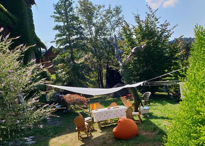 La Hisa Velikanka_Giantess Affittacamere comprende un patio e un salottino, dove gli ospiti possono ammirare la vista sul giardino. Il bagno è dotato di un bagno alla francese e una doccia, asciugacapelli e teli da bagno.